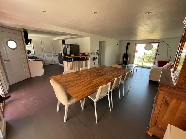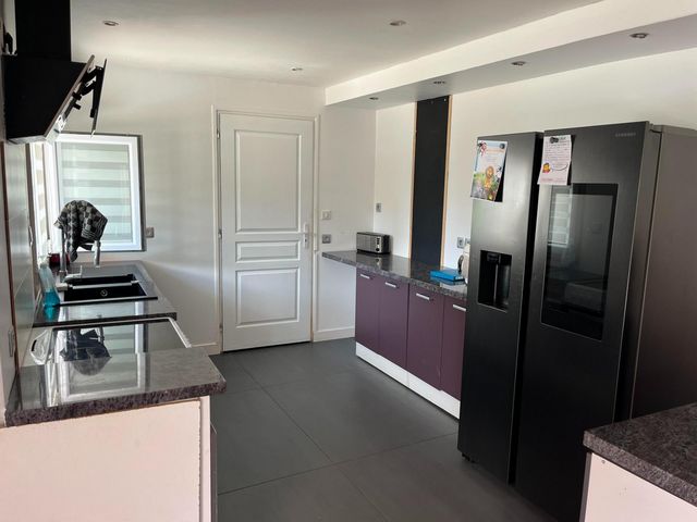 Elle se compose d'une cuisine ouverte sur le séjour lumineux avec ces deux baies vitrées.