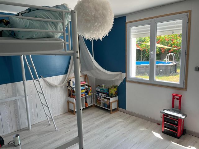 Deux chambres d'enfants regroupées de l'autre côté de la maison avec leur salle d'eau dédiée.