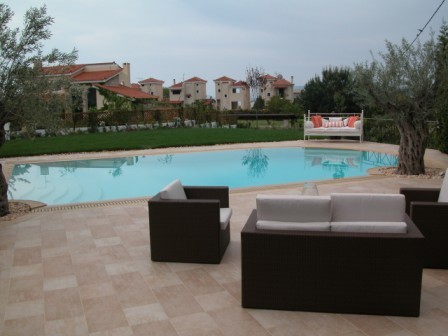 - Garden Located in Porto Heli-Ermioni, in the Plepi area near Porto Hydra, this stunning single-family home spans 350 square meters. The residence offers the versatility to function as two independent homes: one measuring 250 square meters and the other 100 square meters. As a single unit, the property features five bedrooms, four bathrooms, and two kitchens, all situated on a 1,300 square meter corner lot that includes a swimming pool. The pool area is beautifully landscaped with California marble, complete with changing rooms and a bathroom. In the garden, there is a specially designed gazebo equipped with a BBQ for outdoor entertaining. Constructed in 2007, this home is part of a residential community featuring similar properties and is located just 100 meters from the beach. Youtube: https://youtu.be/BZwlP3DW3a0 For those considering the option of operating the residence as two separate living spaces, the 250 square meter section consists of three bedrooms, one kitchen, and two bathrooms, while the 100 square meter section includes two bedrooms, one kitchen, and two bathrooms. This property represents an exceptional opportunity for a vacation home for individuals seeking a beautiful residence in a tranquil and picturesque area, with the potential for one or two households. The swimming pool, measuring 80 square meters, is a stunning centerpiece in the garden area. The beach is conveniently located just 100 meters away, across from Hydra Island.