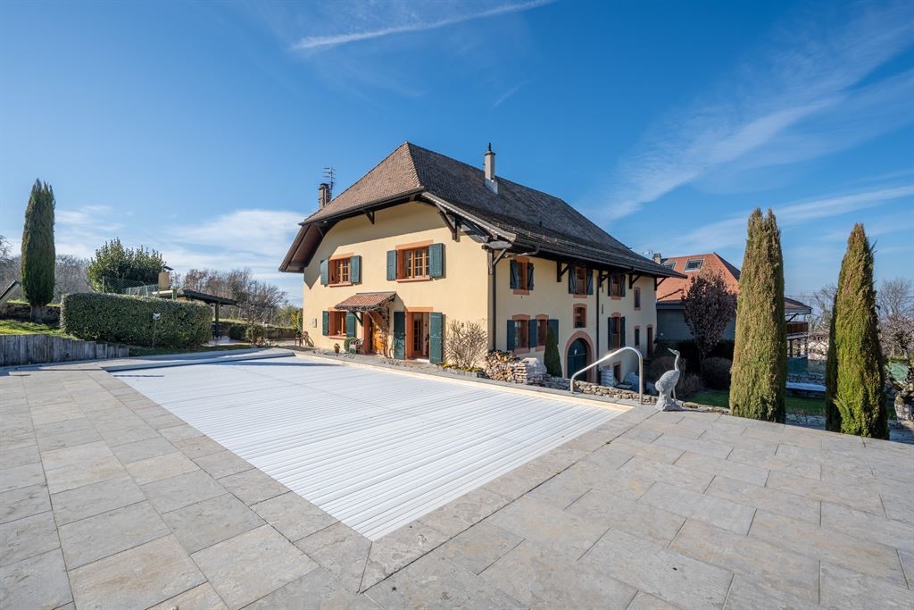 - Terrace Située sur la commune de Maxilly-sur-Léman, à seulement 10 minutes d’Evian les Bains, cette maison de caractère datant de 1824 offre une surface habitable d’environ 300 m2, répartie sur trois niveaux, le tout sur un terrain de 1848 m2. Grand potentiel d’agrandissement avec une partie actuellement non rénovée sur deux niveaux avec une entrée séparée. Le rez-de-jardin se compose d’une grande entrée, d’une cuisine équipée avec cellier attenant, d’une salle à manger, d’un salon avec cheminée, d’un très grand salon, d’une suite avec salle d’eau, ainsi que d’un WC avec lavabo. Au premier étage, vous trouverez une bibliothèque en mezzanine, un toilette, une chambre à l’est avec placards et rangements, une salle d’eau, une chambre à l’ouest avec placards et une salle d’eau (coin beauté), une autre chambre à l’ouest avec placards, deux chambres avec dressing commun dont une avec salle de bains (baignoire, douche, toilettes). Au rez-de-chaussée, la propriété dispose d’une chaufferie avec un débarras attenant, ainsi que d’un garage pour deux voitures en enfilade, de deux grandes caves en terre cuite et d’une ancienne écurie. Un accès indépendant mène à une annexe comprenant : deux pièces à rénover, ainsi que deux autres pièces à l’étage. Un grand potentiel d’aménagement des combles permet la création de deux niveaux supplémentaires. A l’extérieur, vous profiterez d’une piscine chauffée au sel avec couverture automatique, d’un portail électrique avec vidéophone, d’une terrasse avec coin barbecue et d’un terrain de pétanque.