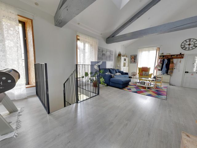 This house offers you on 170m2 of living space a superb living space of nearly 70m2 opening onto a magnificent terrace overlooking the enclosed and wooded land of more than 900m2. The kitchen distributes both the dining room and the terrace, a pleasant living space at the slightest ray of sunshine. The house offers a total of 5 bedrooms + a shower room, a bathroom, a laundry area and a finished mezzanine. The whole thing has been renovated with taste and beautiful quality services 10 years ago.