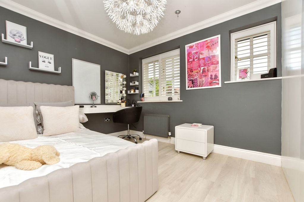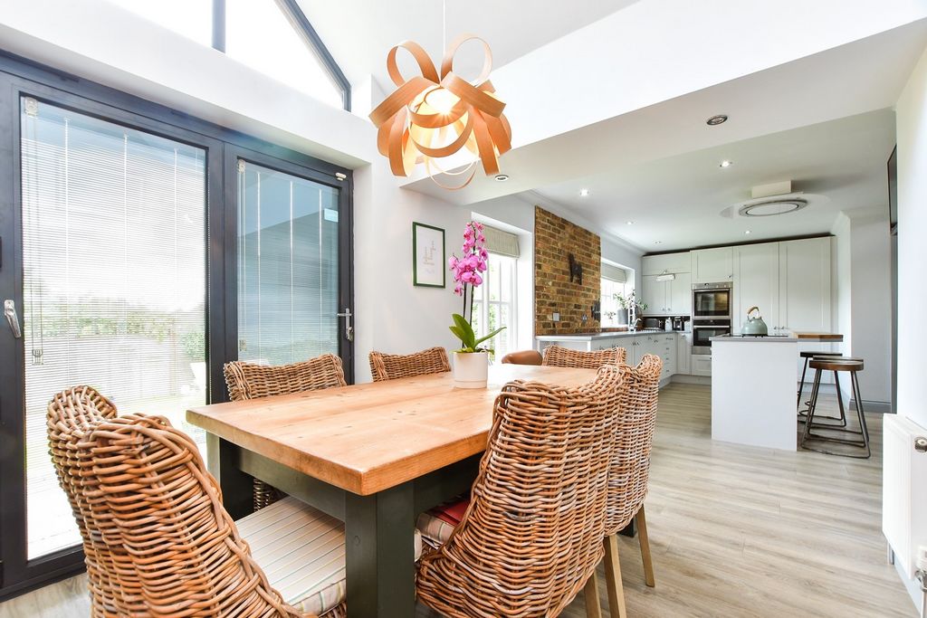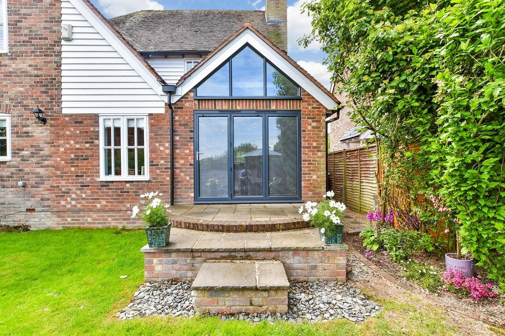 - Garage Vezi mai mult Vezi mai puțin The adorable Lavender Cottage immediately makes you think of the ideal ‘roses round the door’ country cottage as it has all the charm of a period property with its traditional weatherboard exterior, impressive chimneystack, multi-pane casement windows, patterned brickwork and attractive pitched roof porch. However, it was only built in 2002 by the prestigious Oakley Homes - known for creating beautiful individual houses of distinction - so has all the advantages of being designed and built for modern day living. It is located in the Turley Farm private enclave of five individually designed detached properties. They are surrounded by fields in an Area of Outstanding Natural Beauty and approached off a quiet country lane, yet only a 15 minute walk to Staplehurst and the station via a footpath where trains can whisk you to London Bridge in under an hour. This immaculately presented property includes a detached double garage with upper storage facilities, a log store and a driveway, providing off road parking for three cars, that leads to the entrance. The front door opens into the hallway with Amtico flooring that flows throughout the ground floor, a staircase to the first floor, a cloakroom and a fully equipped bespoke office space that is ideal if you are working from home. The flexible accommodation also includes a reception room that could be a separate dining room/office/gym or games room as well as a large living room. This features a charming fireplace with a real log/coal burning fire and a wood surround that is just the place to cosy up to on a cold winter’s evening. The room is semi open plan to the ‘piece de resistance’ of this delightful family home - the simply stunning kitchen/breakfast/dining room. It includes a double height, vaulted ceiling dining area extension with three aluminium bi-fold doors to the rear terrace and when these doors are open you can really feel you are ‘bringing the outdoors inside’. There is also a bespoke trapezoid window above as well as an old brick feature wall. While the impressive new and beautifully equipped kitchen/breakfast room includes a matching brick wall feature and light grey shaker style units. These house a built in double slide and hide oven and combi microwave/oven, an integrated full height fridge and adjacent matching freezer as well as a drinks fridge, a pantry, a butler’s sink with a filter tap and a dishwasher. There is also a large central island/breakfast bar with a five ring induction hob and space for four stools. An adjacent and equally well fitted utility room includes hanging and storage space as well as a concealed washing machine and tumble dryer and a door to the side patio. Off the spacious first floor landing there is a recently refurbished family bathroom with a bath and a separate rainfall shower and four double bedrooms with delightful rural views. Three of the bedrooms have bespoke fitted wardrobes and two have Amtico flooring, while the chic principal also includes a recently updated ensuite rainfall shower and underfloor heating. The spacious and secluded rear garden is surrounded by fruit trees, established shrub borders and flower beds and includes a large lawn that is ideal for kids to kick a football around, as well as a private side patio for relaxing in the sunshine and a large terrace for barbecues and al fresco dining. What the owners say: We bought this property from new more than 20 years ago and have thoroughly enjoyed our time here. The location is very special and, because it is a part of a small private development, it is also very safe and secure for children and pets, while the surrounding countryside offers wonderful places to take the dog for walks. We are part of the warm and friendly Turley Farm community with delightful neighbours that share a WhatsApp group and enjoy communal summer BBQs and Christmas drinks parties. We are very sad to leave but it is time for a new chapter in our lives as our daughters are ‘fleeing the nest.’ During our time here we have upgraded the property by adding the rear extension, installing a new kitchen, incorporated integrated window blinds for privacy and redecorated the property internally with a neutral colour scheme throughout. There is also an economical oil fired central heating system, a new water pump to ensure excellent water pressure and lockable side gates for added security and enabling refuse bins to be discreetly hidden from view. We also share a treatment plant for waste water with the other residents that costs about £120 a year per property. We are only a few minutes’ drive from the vibrant and friendly village (or town) of Staplehurst with its variety of independent shops, sports facilities and eateries as well as the mainline station. It includes a good primary school as well as a football, tennis and cricket club, while its very own Village Golf Club is one if Staplehurst’s best kept secrets. Known as the ‘Capital of the Weald’, the nearby pretty town of Cranbrook features may buildings dating from the 15th through to the 19th century including its famous windmill. There are also plenty of shops, bars, restaurants and a theatre as well as popular annual events. The town also has a Grade I listed church and a museum, good primary and secondary state schools including the Cranbrook School, rated Outstanding by Ofsted and the only state boarding school in the country, as well as excellent private schools in the vicinity. Almost equally as close is Kent’s county town of Maidstone, ranked as one of the top five shopping centres in the south east. It also includes night clubs, a multiplex cinema, a trampoline park and great places to eat. While education wise it has 23 primary schools and 15 secondary schools including Maidstone Grammar, founded in 1549.