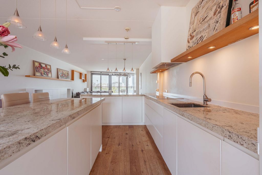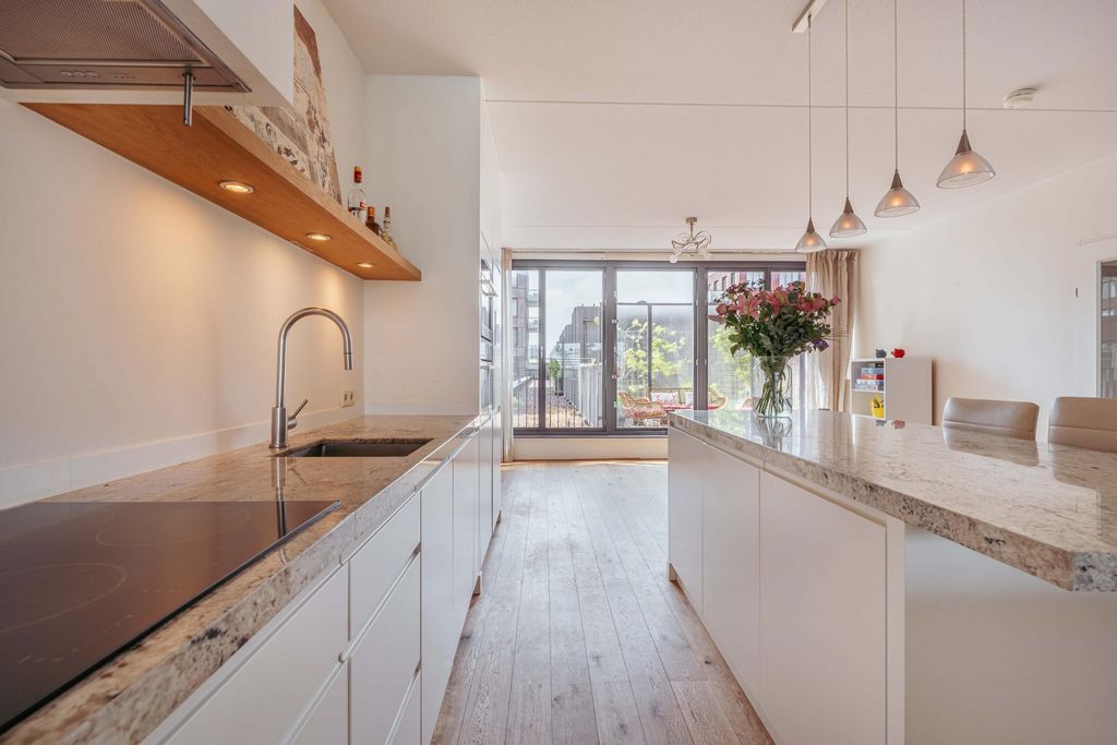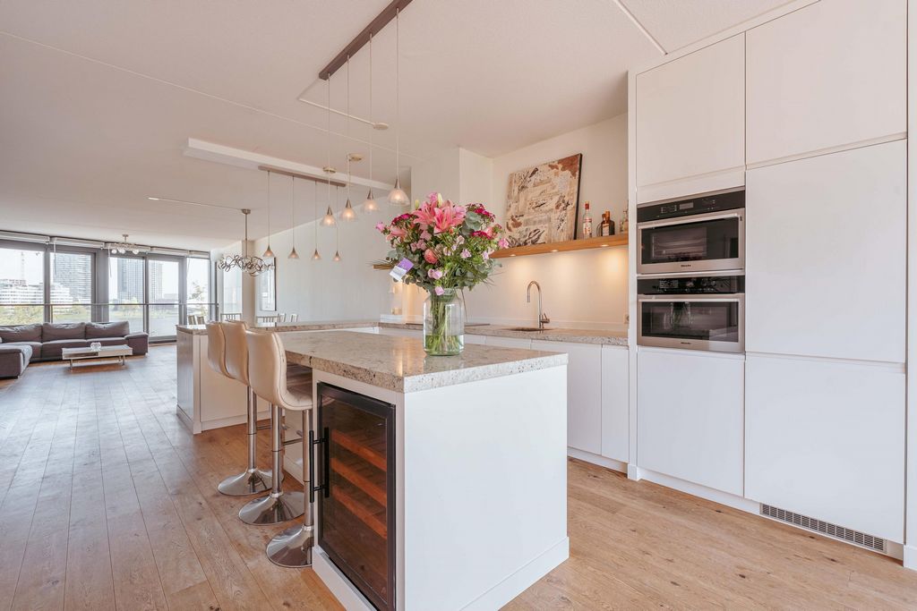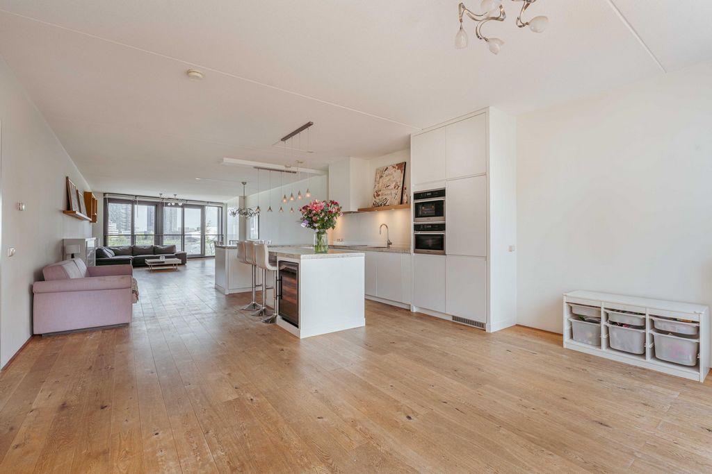 • Oplevering in overlegDeze informatie is door ons met de nodige zorgvuldigheid samengesteld. Onzerzijds wordt echter geen enkele aansprakelijkheid aanvaard voor enige onvolledigheid, onjuistheid of anderszins, dan wel de gevolgen daarvan. Alle opgegeven maten en oppervlakten zijn indicatief. Koper heeft zijn eigen onderzoek plicht naar alle zaken die voor hem of haar van belang zijn. Met betrekking tot deze woning is de makelaar adviseur van verkoper. Wij adviseren u een deskundige (NVM-)makelaar in te schakelen die u begeleidt bij het aankoopproces. Indien u specifieke wensen heeft omtrent de woning, adviseren wij u deze tijdig kenbaar te maken aan uw aankopend makelaar en hiernaar zelfstandig onderzoek te (laten) doen. Indien u geen deskundige vertegenwoordiger inschakelt, acht u zich volgens de wet deskundige genoeg om alle zaken die van belang zijn te kunnen overzien. Van toepassing zijn de NVM voorwaarden. Westerdoksdijk 491, 1013 BX AmsterdamEnjoy breathtaking daily views over the IJ from this spacious 4-room apartment measuring a spacious 164 m², located on the highly sought-after Westerdokseiland. With a sunny west-facing terrace of 14 m², a luxurious open kitchen, three bedrooms, and a smart, functional layout, this apartment offers everything for comfortable and stylish living in the heart of Amsterdam. A private storage unit and the option to purchase a private parking space in the underground garage complete the package.Location / AccessibilityThis apartment is situated on the modern Westerdokseiland, a unique residential area on the edge of the Jordaan and the historic city center. Here, you enjoy the best of both worlds: the vibrant energy of the city combined with the peace and space of waterfront living. Within just a few minutes’ walk, you’ll reach Central Station, Haarlemmerstraat, the canal belt, or the charming Prinseneiland. The immediate surroundings offer an excellent selection of high-quality restaurants, cozy cafés, and unique boutiques — think of popular spots like Meneer Nieges, De Gouden Reael (by Caron), BAK, and the fashionable shops along Haarlemmerdijk. The Noordermarkt and Westerpark are also just around the corner. The nearby ferry takes you directly to creative and bustling Amsterdam-Noord. Whether by bike, car, or public transport, accessibility is excellent. Central Station is within walking distance, and by car you can reach the A10 Ring Road via the S101/S102 or Piet Hein Tunnel in no time. Schiphol Airport is just 20 minutes away.LayoutThird floor