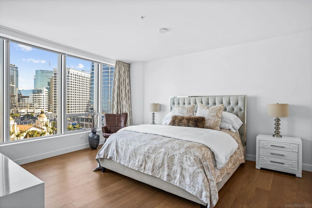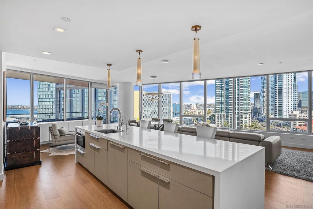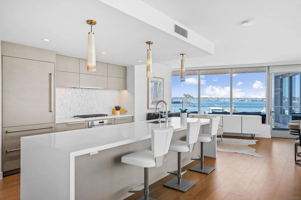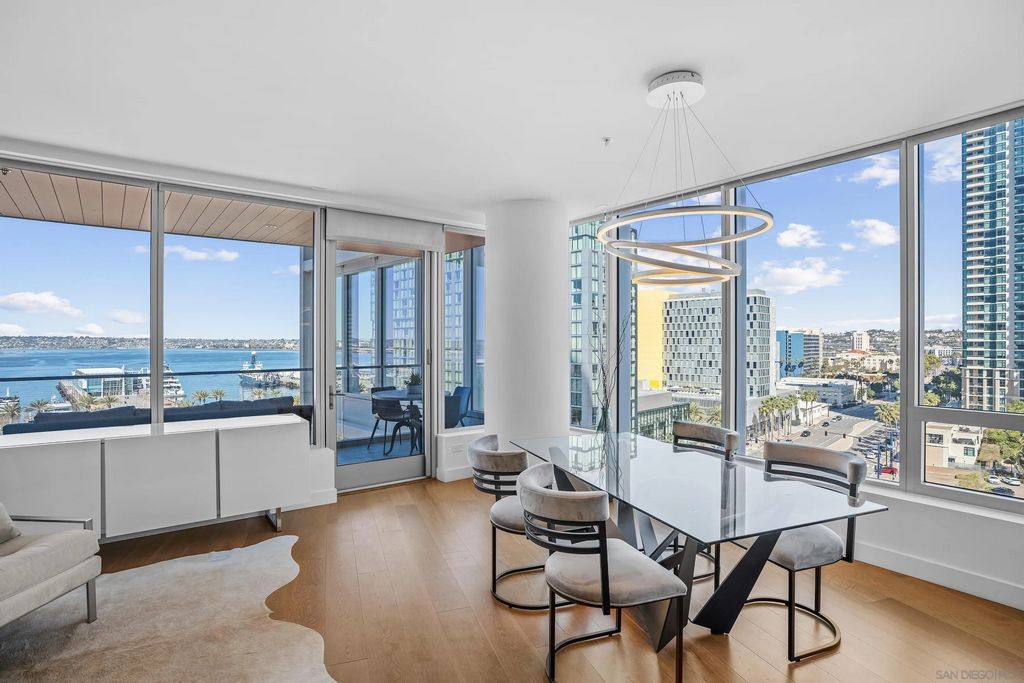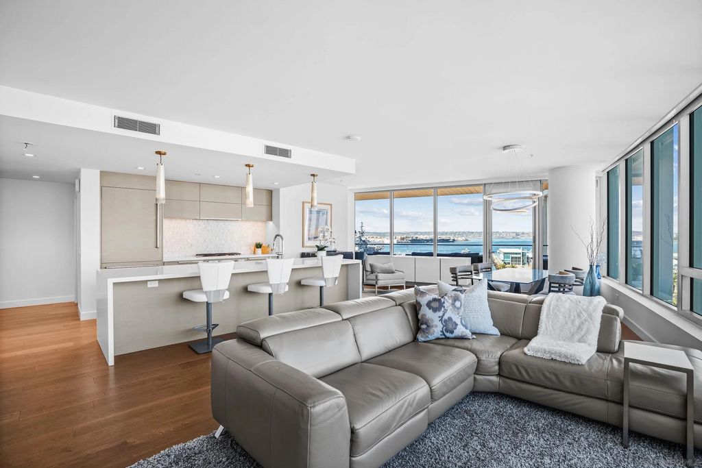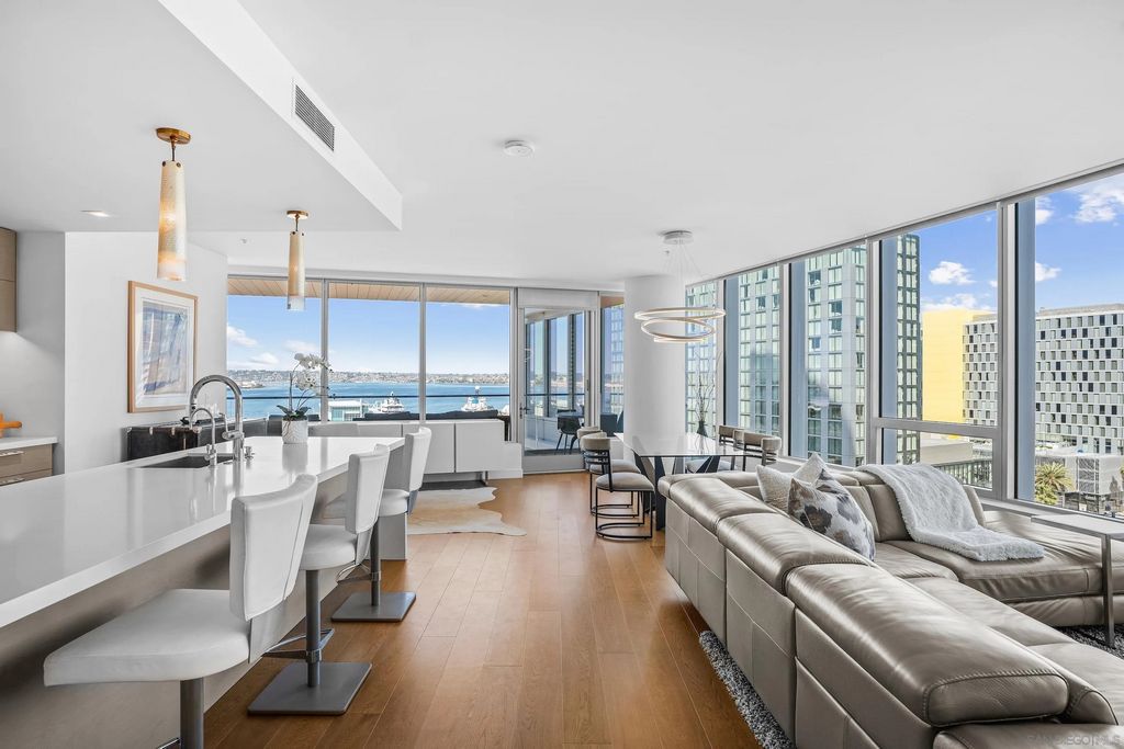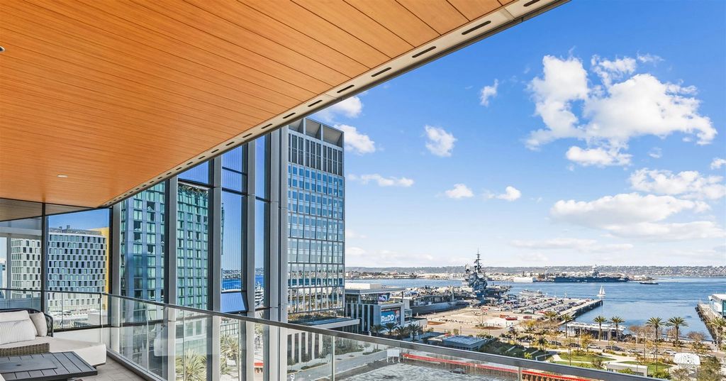 Welcome to The Ultimate Luxury lifestyle, a premier northwest corner residence in San Diego’s only Super Prime residential tower, Pacific Gate. Residence 1101 offers a spacious layout with 2 bedrooms plus den, 2.5 bathrooms, and a thoughtful design that captures breathtaking panoramic views of the San Diego Bay, Pacific Ocean, and the city skyline. The expansive open layout is perfect for entertaining, with a spacious private terrace where you can unwind while watching the sun set over the waterfront. The chef-inspired kitchen is a masterpiece, featuring premium Wolf and Miele appliances, Caesarstone countertops, and sleek custom cabinetry. Beautiful hardwood floors and upgraded window treatments and lighting add warmth and elegance throughout the space. The luxurious primary suite enjoys floor-to-ceiling windows, a spa-like bath, and a generous walk-in closet. A separate guest suite offers stunning water views, while a den/office space provides flexibility for a home office or additional bedroom. Luxury resort amenities include a 45' yacht share, luxury car fleet, 24/7 concierge, a guest suite, pool terrace with cabanas, residents lounge with catering kitchen, a state-of-the-art fitness center with a sauna and steam room, screening room, dog run, and an onsite celebrity chef-owned restaurant. Enjoy the coastal luxury lifestyle in San Diego's only Super Prime residential tower. Pacific Gate is located in Millionaire's Row and steps from the harbor, Seaport Village, the Rady Shell, restaurants, and luxury boutique shops.