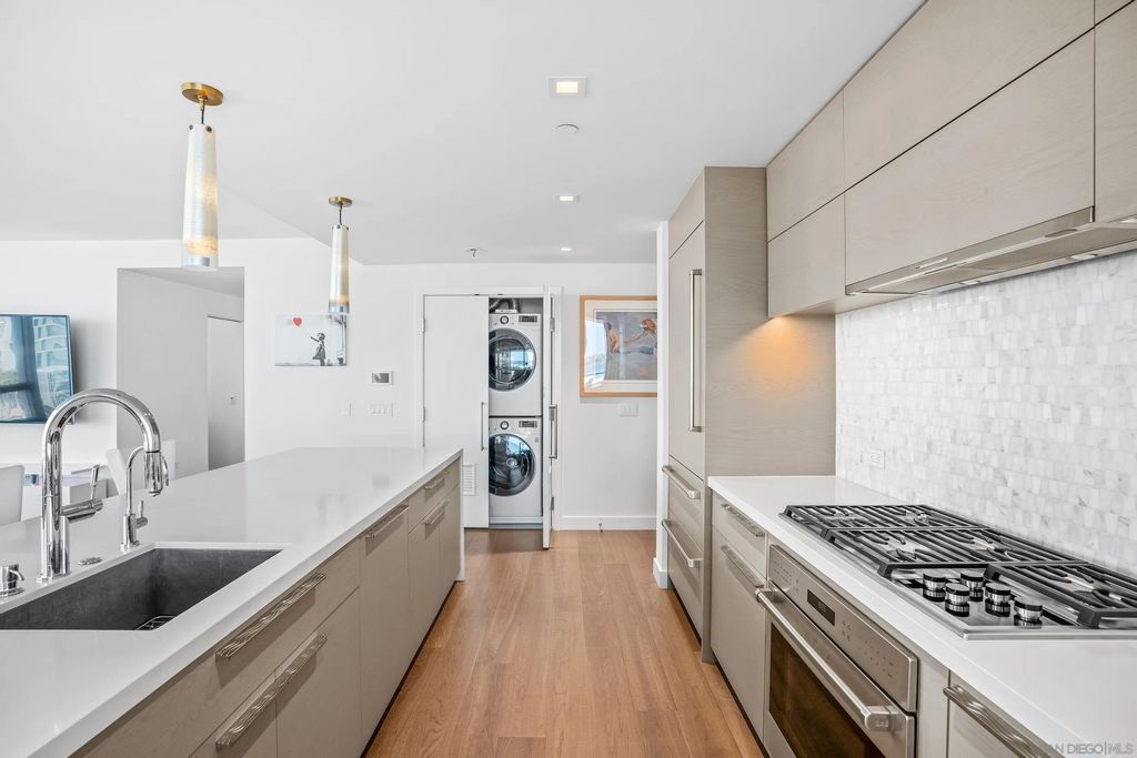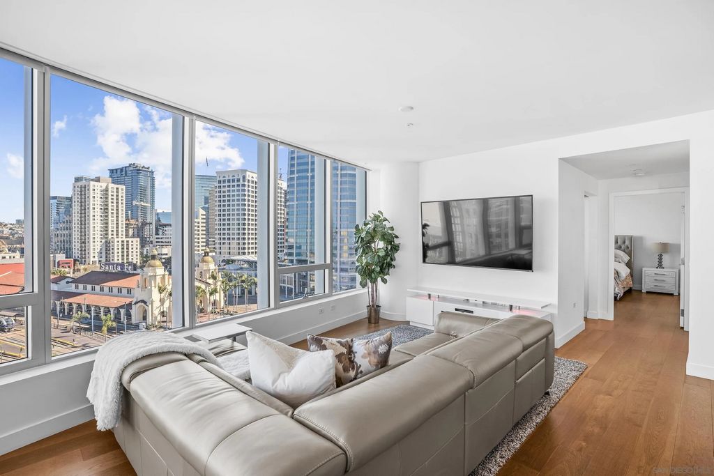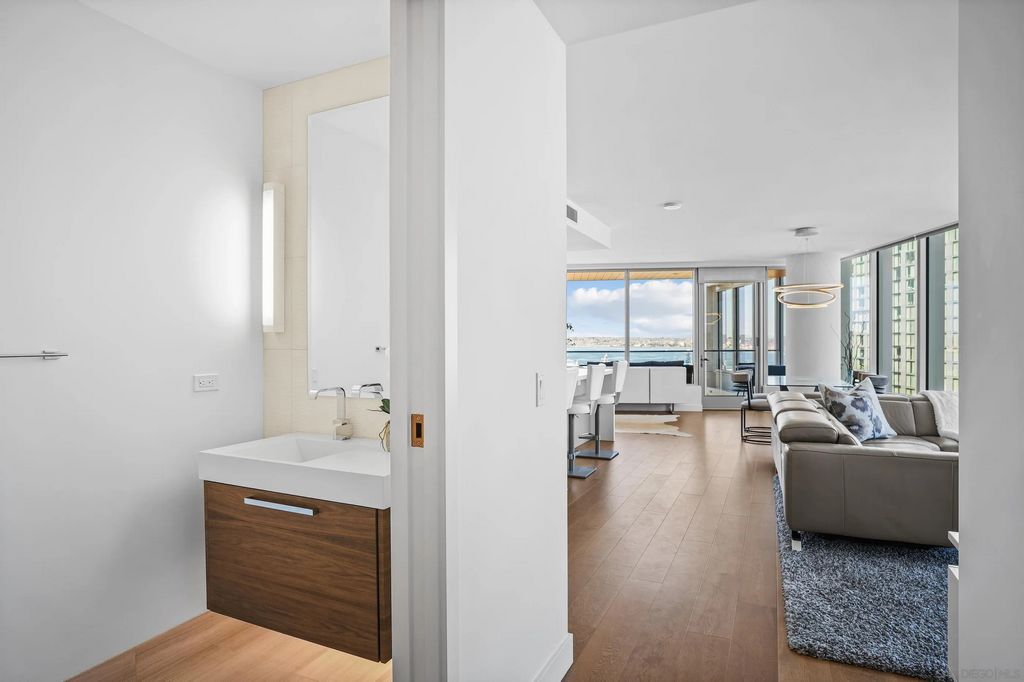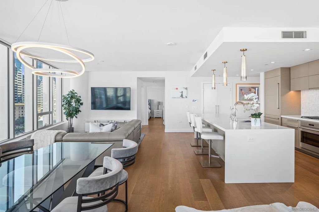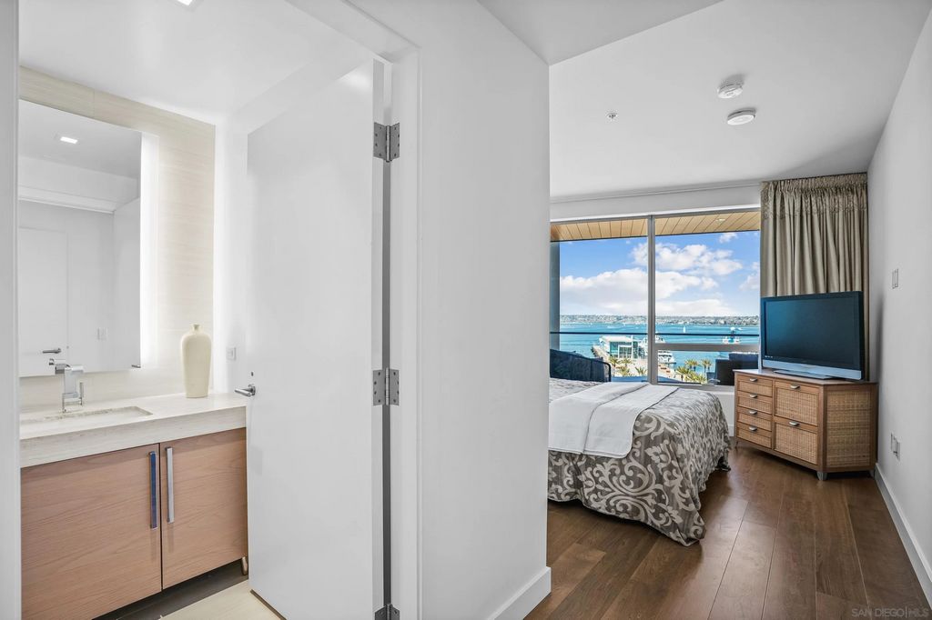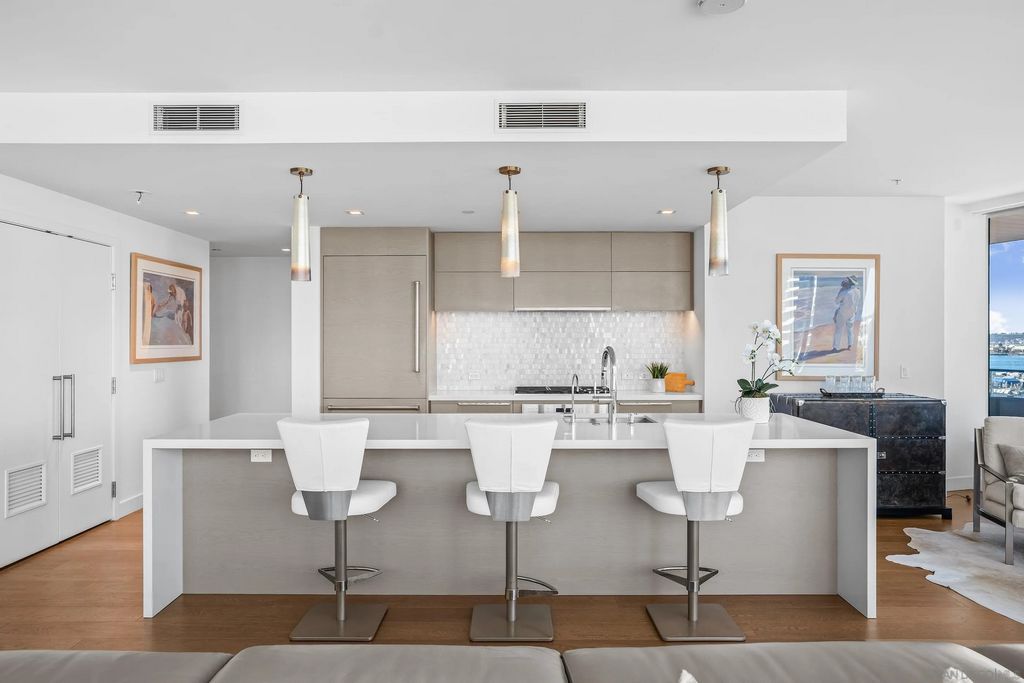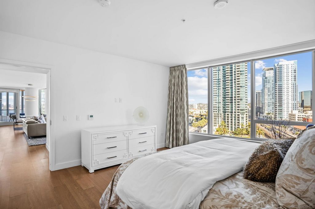 Welcome to The Ultimate Luxury lifestyle, a premier northwest corner residence in San Diego’s only Super Prime residential tower, Pacific Gate. Residence 1101 offers a spacious layout with 2 bedrooms plus den, 2.5 bathrooms, and a thoughtful design that captures breathtaking panoramic views of the San Diego Bay, Pacific Ocean, and the city skyline. The expansive open layout is perfect for entertaining, with a spacious private terrace where you can unwind while watching the sun set over the waterfront. The chef-inspired kitchen is a masterpiece, featuring premium Wolf and Miele appliances, Caesarstone countertops, and sleek custom cabinetry. Beautiful hardwood floors and upgraded window treatments and lighting add warmth and elegance throughout the space. The luxurious primary suite enjoys floor-to-ceiling windows, a spa-like bath, and a generous walk-in closet. A separate guest suite offers stunning water views, while a den/office space provides flexibility for a home office or additional bedroom. Luxury resort amenities include a 45' yacht share, luxury car fleet, 24/7 concierge, a guest suite, pool terrace with cabanas, residents lounge with catering kitchen, a state-of-the-art fitness center with a sauna and steam room, screening room, dog run, and an onsite celebrity chef-owned restaurant. Enjoy the coastal luxury lifestyle in San Diego's only Super Prime residential tower. Pacific Gate is located in Millionaire's Row and steps from the harbor, Seaport Village, the Rady Shell, restaurants, and luxury boutique shops.