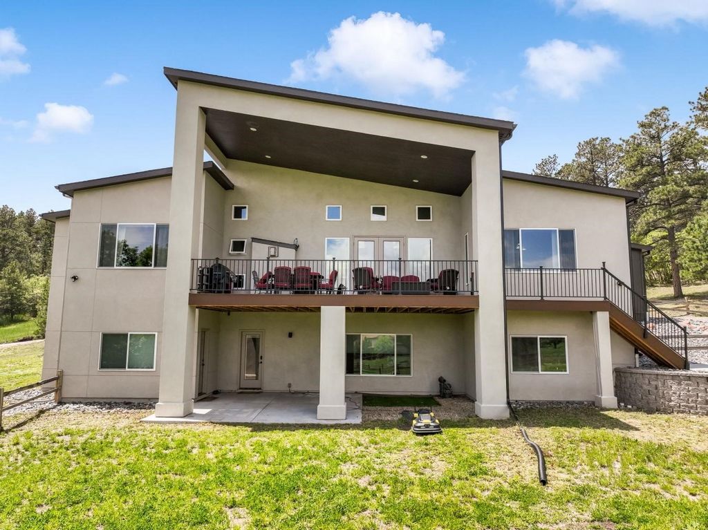 Welcome home to this ranch style retreat where modern convenience meets Colorado mountain living on over an acre of beautiful land in Monument. Custom built in 2022 and thoughtfully designed with both style and function in mind. This stunning home with a finished walkout basement offers 4 spacious bedrooms, 3 bathrooms, and an exceptionally functional open concept floor plan. Inside, you'll love the bright and airy layout featuring vaulted ceilings, a gas fireplace, and luxury finishes throughout. The gourmet kitchen is a dream, complete with a commercial grade gas range, oversized refrigerator, quartzite countertops, dual walk-in pantries, and a massive island with built in microwave. The primary suite is a peaceful retreat with sound-reducing insulation, heated floors, dual vanities, an expansive walk-in closet, and an oversized zero entry shower with three shower heads. Downstairs, the finished walkout basement includes a fourth bedroom with walk in closet, an additional bathroom and a spacious recreation room. The hobby room with exterior access creates endless opportunities. Smart home features are integrated from top to bottom, including lighting, locks, thermostat, blinds, and even garage doors. This home also features dual zone heating and AC, a hot water recirculator for instant hot water, and a full laundry/mudroom with convenient access to the 3-car garage. Outside, enjoy the covered 500 sqft composite deck, patio directly under the deck, native landscaping, turf courtyard, dedicated dog run, large fenced backyard area, and 10x12 storage shed. The home was built with a durable stucco and cement fiber exterior and a Class IV impact resistant roof. The community is part of a federally recognized Firewise program and has voluntary HOA dues, minimal covenants and is a quick drive to Monument Lake, D38 schools, and endless hiking opportunities. Come tour this peaceful retreat and experience all it has to offer!