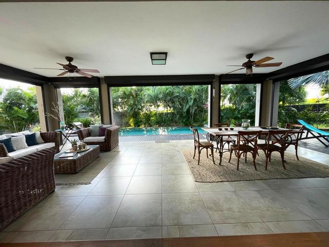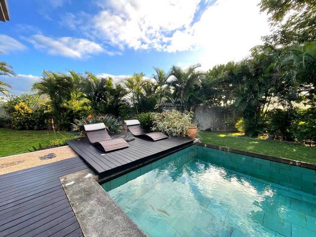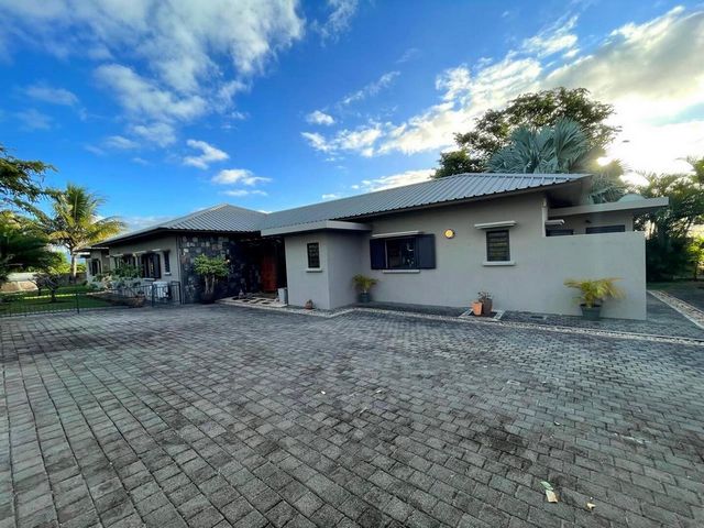 - Swimming Pool In the heart of one of Mauritius' most prestigious residential areas, discover this superb single-storey villa, nestled in Mont Piton, in a secure, green and perfectly maintained environment. The ideal address for discerning families or investors looking for a rare property in an exclusive setting. Main features: • Living area: 253 m² • Land: 1,052 m² • Single storey: fluid circulation and absolute comfort • 4 master suites, all with en-suite bathrooms • 1 independent suite, ideal for entertaining or accommodating staff • Large living area: lounge, dining room and open-plan kitchen • Fitted kitchen + utility room/laundry room • Large windows opening onto the outside: natural light and optimal ventilation Exterior: • Carefully landscaped garden • Space for a swimming pool (if not already existing) • Several outdoor relaxation and dining areas • Parking for several vehicles Location: Résidence Mont Piton, secured 24/7 with access control, perfect for those seeking peace, luxury and security, while remaining close to international schools and Grand Baie. Sale price: Rs 28,800,000 Contact Expat Immobilier to schedule a private viewing of this exceptional property. Translated with DeepL.com (free version)