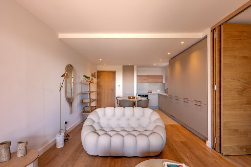 Agencement de l'appartements 19 : Situé au 1er étage, il développe une surface habitable de 44 m² et dispose d'une terrasse parfaitement exposée de 9 m² et d'une cave de 5 m². Exposé plein sud, il se compose d'un séjour et d'une cuisine ouverte, l'ensemble donnant sur la terrasse et la mer par une large baie vitrée permettant de profiter de ce panorama unique. Une chambre pouvant s'ouvrir totalement sur la pièce à vivre et une salle d'eau complète cet appartement. LAST CHANCE