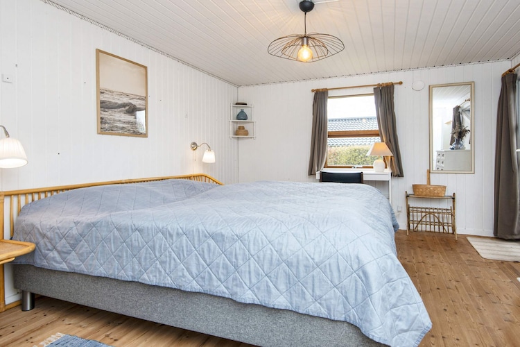 Questa incantevole casa vacanze si trova a Bork Havn, a soli 300 metri dal fiordo di Ringkøbing, ed è ideale per famiglie o piccoli gruppi in cerca di un soggiorno rilassante vicino all'acqua. La proprietà è stata progettata con cura, sfruttando ogni metro quadrato in modo efficiente, e la cucina e la zona giorno open space rappresentano un luogo di ritrovo naturale per la vita familiare durante le vacanze. Dal soggiorno si accede direttamente a una terrazza in legno perfettamente esposta al sole, ideale per godersi le giornate calde e soleggiate. Inoltre, la casa dispone di una terrazza coperta, protetta dall'edificio stesso, che consente di pranzare o rilassarsi all'aperto indipendentemente dalle condizioni meteorologiche. La camera da letto principale offre un letto matrimoniale e un ampio spazio per riporre i propri effetti personali, mentre la camera da letto più piccola include un letto corto, perfetto per i bambini. Per una maggiore flessibilità, una dependance separata nelle vicinanze include un letto matrimoniale, un televisore e un lavabo, offrendo ulteriore comfort e privacy agli ospiti. La casa vacanze è riscaldata con una pompa di calore a basso consumo energetico, garantendo un clima interno confortevole durante tutto l'anno. Il giardino è dotato di un braciere, perfetto per le serate in compagnia, per arrostire marshmallow o semplicemente per godersi l'aria aperta. Con la sua combinazione di interni ben progettati, spazi esterni e la vicinanza al fiordo, questa proprietà è la scelta ideale per una vacanza tranquilla e indimenticabile in riva al mare. Non si affitta a gruppi di giovani.