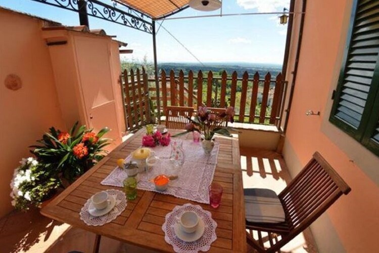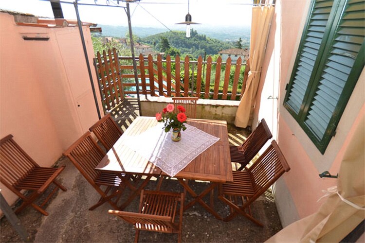 Comfortable apartment set in a sunny and scenic position on the hills north of Lucca within the small village of Ciciana. Set within a lovely landscape cut into smooth hills, with vineyards and olive grooves, the apartment provides a pleasant and relaxing place to spend your holidays. An external area equipped with a table and chairs, a well cared terraced garden and a pool (above the ground, octagonal shape, made of wood 5x4 m, depth 1,40m) provide a further attraction for those who like to be outdoors and get the most out of long summer days. The surroundings of the house have a lot to offer to visitors who visit for the first time this region: quaint, little hamlets, historic villas with magnificent parks, delicious restaurants and the wine route which winds on the hills all around Montecarlo, the wine area of Lucca. Some of the most famous Tuscan towns such as nearby Lucca, Pisa and Florence are an ideal destination for a day trip. The coast with its famous seaside resorts such as Viareggio, Lido di Camaiore and Forte dei Marmi is likewise easy to reach by car. The house is for the sole use of the guests: the 1st floor is not inhabited and remains closed whereas two rooms on the ground floor are for the use of the owners and therefore not accessible to the guests. The house is built on terraced grounds, the entrance is on the 1st floor. The interiors consist of: hallway, living room with 1 double sofa-bed, 2 chairs, window with wonderful views onto the valley. 1 double bedroom (beds may be divided), 1 double bedroom, kitchen/dining room with stove/oven, dish washer, washing machine, microwave, iron and ironing board, dining table. A couple of steps lower: 1 bathroom with bathtub/shower, wc and bidet. The outside of the house consist of a patio equipped with a table and chairs for al fresco dining and a terraced garden. From the house level some steps lead to the terrace below where guests have at their disposal a swimming pool. Parking space at roughly 30 m from the house along the road.