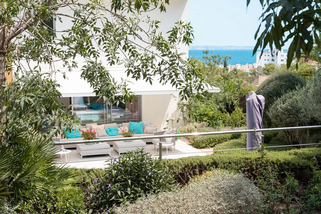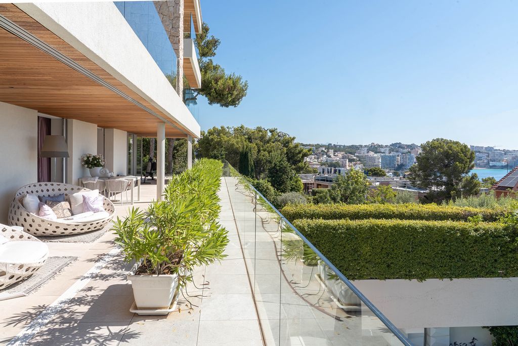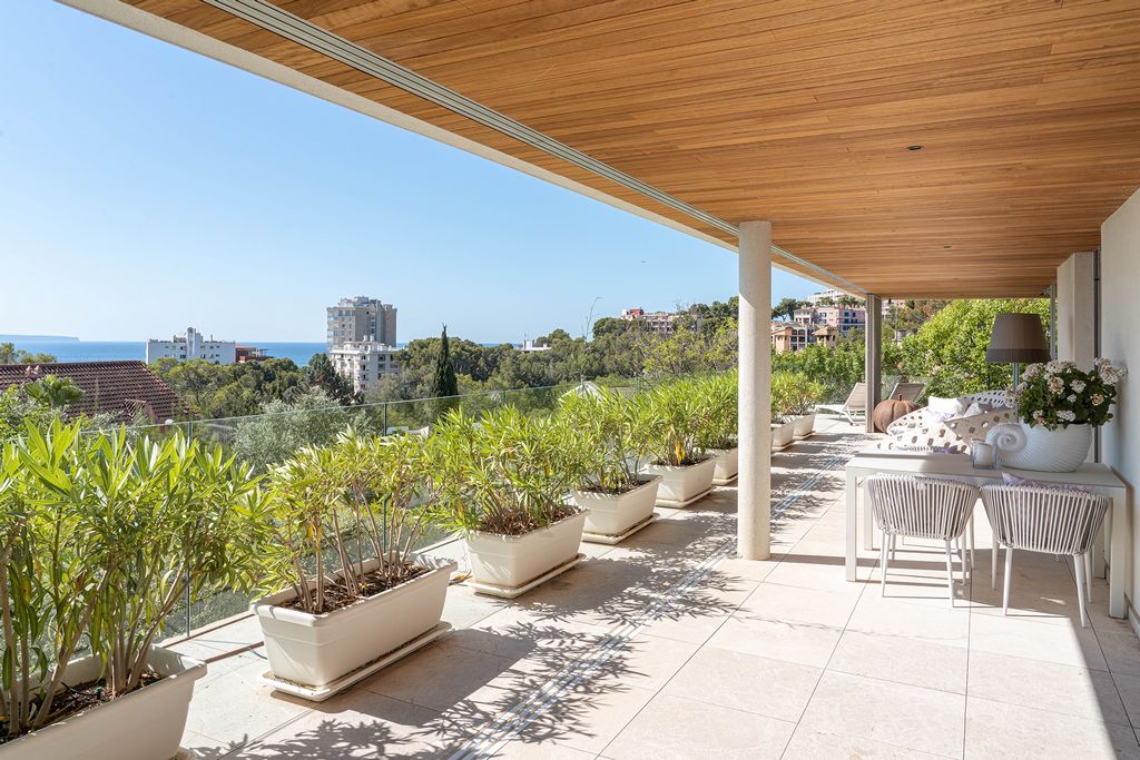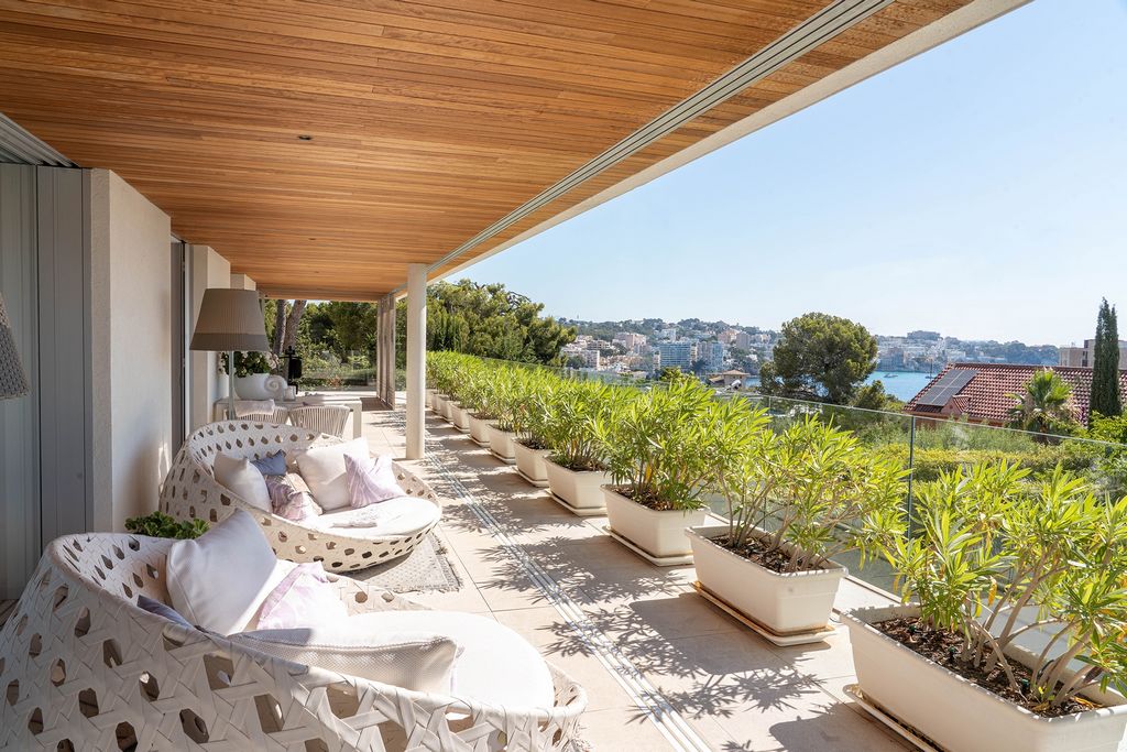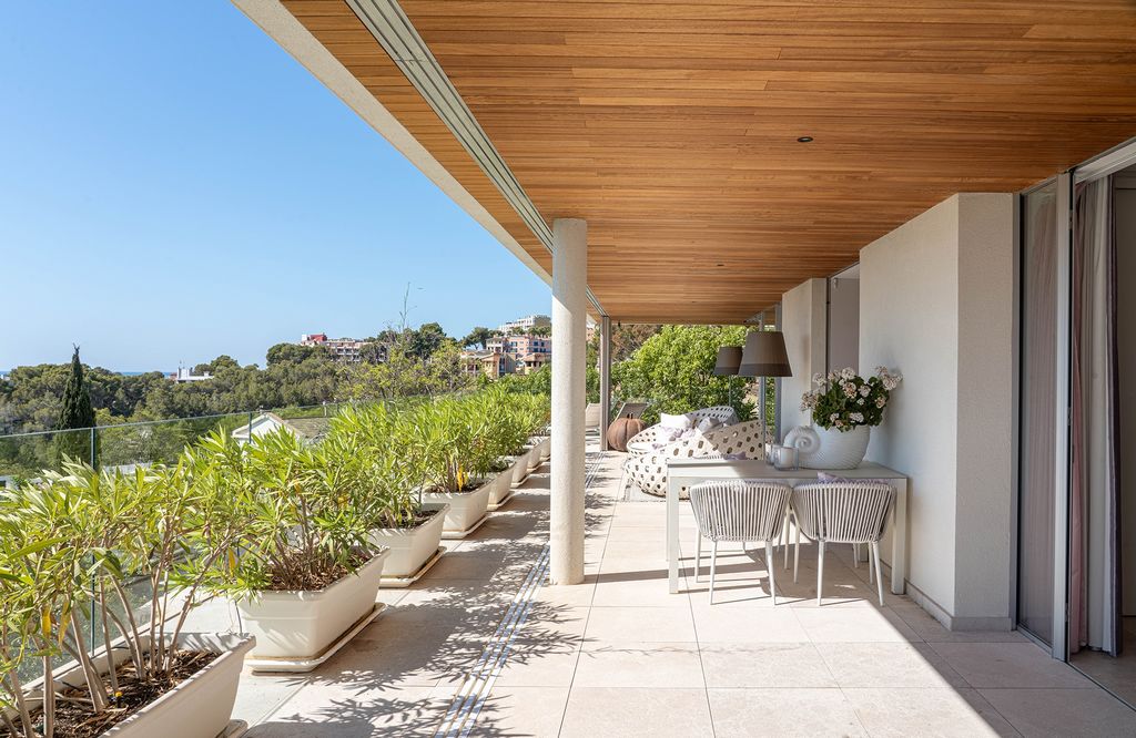 Die gesamte Wohnung ist von Terrassen umgeben, die sich von mehreren Räumlichkeiten erreichen lassen – so zum Beispiel vom Wohnzimmer und vom Hauptschlafzimmer. Eine große, offene Terrasse auf der Rückseite, grenzt direkt an den privaten Pool.