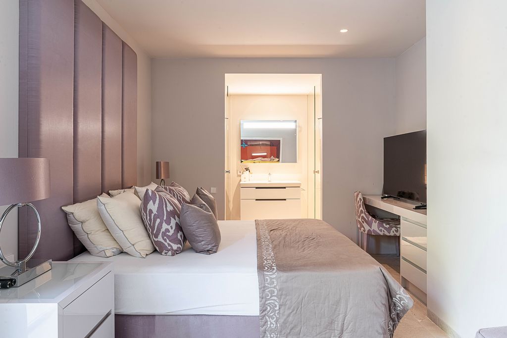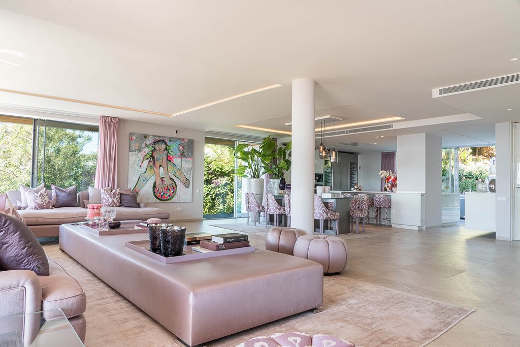 Die luxuriöse Immobilie hat eine großzügige Wohnfläche von 300 m² und nimmt eine ganze Etage des Gebäudes ein. Der Grundriss ist durchdacht und in zwei großzügige Schlafzimmer, ein Gästezimmer mit eigenem Bad und ein elegantes Hauptschlafzimmer aufgeteilt. Dieses ist mit einem begehbarem Kleiderschrank, einem großem Badezimmer en suite und direktem Zugang zur Terrasse ausgestattet. Das luftige Wohnzimmer mit Essbereich geht nahtlos in eine offene, voll ausgestattete Küche im modernen Stil über.