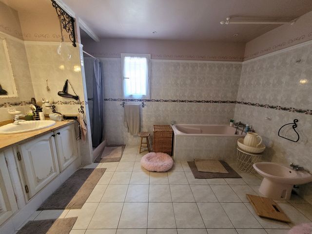 With Land/Garden Vezi mai mult Vezi mai puțin Superb village with bars, restaurants, supermarket, schools, bakeries, butchers, pharmacy, doctors, on the banks of the Orb river, 25 minutes from Beziers, 10 minutes from Saint Chinian and 35 minutes from the beaches.Situated on a lovely 1200 m2 plot in the heart of the village, this 5-bedroom villa with 204 m2 of living space offers great potential despite some work to be carried out. The shutters need to be reviewed, some rooms refreshed and the annex finished, but the structure is sound and the volumes generous. With a swimming pool, an ideal location and a plot of land that's rare in the area, this is an opportunity not to be missed for those looking to create a beautiful home for living or a heritage investment.Ground = 9 m2 entrance hall + 12.5 m2 study area + 30 m2 dining room with bar area and sink + 40 m2 living room (fireplace, French window onto terrace) + 18.4 m2 fitted kitchen (electric oven, gas and electric hob, hood, built-in dishwasher, built-in cupboards) + 13. 6 m2 + laundry room 6 m2 + storeroom 6.3 m2 + bedroom 10.7 m2 with access to garden + bathroom 12 m2 (double basins, shower, bath, bidet, heated towel rail) + bedroom 11.5 m2 + bedroom 10.6 m2 (with access to garden) + bedroom 12 m2 (built-in closet and access to garden via French window) + bedroom 8.6 m2 + WC.Exterior = 1200 m2 grounds + traditional swimming pool (9×4.5 m, chlorine) + covered summer kitchen (barbecue, water point and electricity) + pool equipment room + 2 gates + driveway for parking cars + garden shed + 55 m2 outbuilding including a 22 m2 garage that could be converted into an apartment (water point, electricity and several window openings).Miscellaneous = Electric heating + fireplace + double glazing + estimated amount of annual energy consumption for standard use: 1958 Euros per year (including subscriptions) + wooden shutters to renovate + close to all amenities + good location in a beautiful village.Price = 419.000 EurosThe prices are inclusive of agents fees (paid by the vendors). The notaire's fees have to be paid on top at the actual official rate. Information on the risks to which this property is exposed is available on the Geo-risks website: georisques. gouv. frProperty Id : 73922