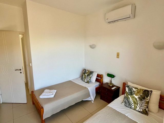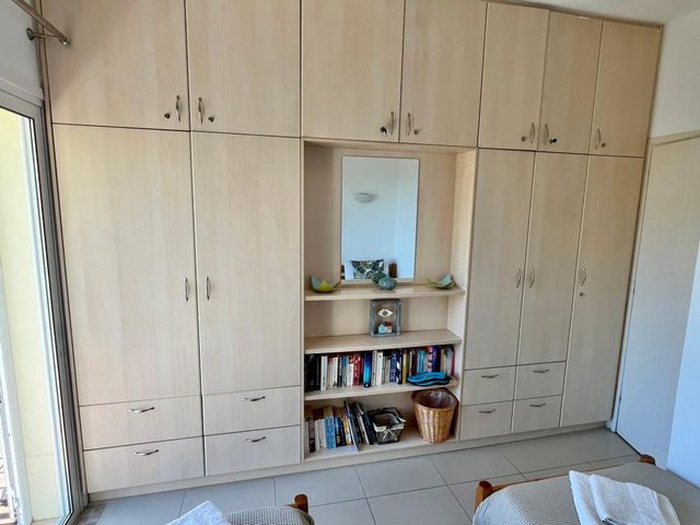 Middle floor (mezzanine): one twin bedroom (offering lovely balcony with sea view) with a big fitted wardrobe, and bathroom.