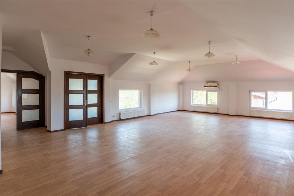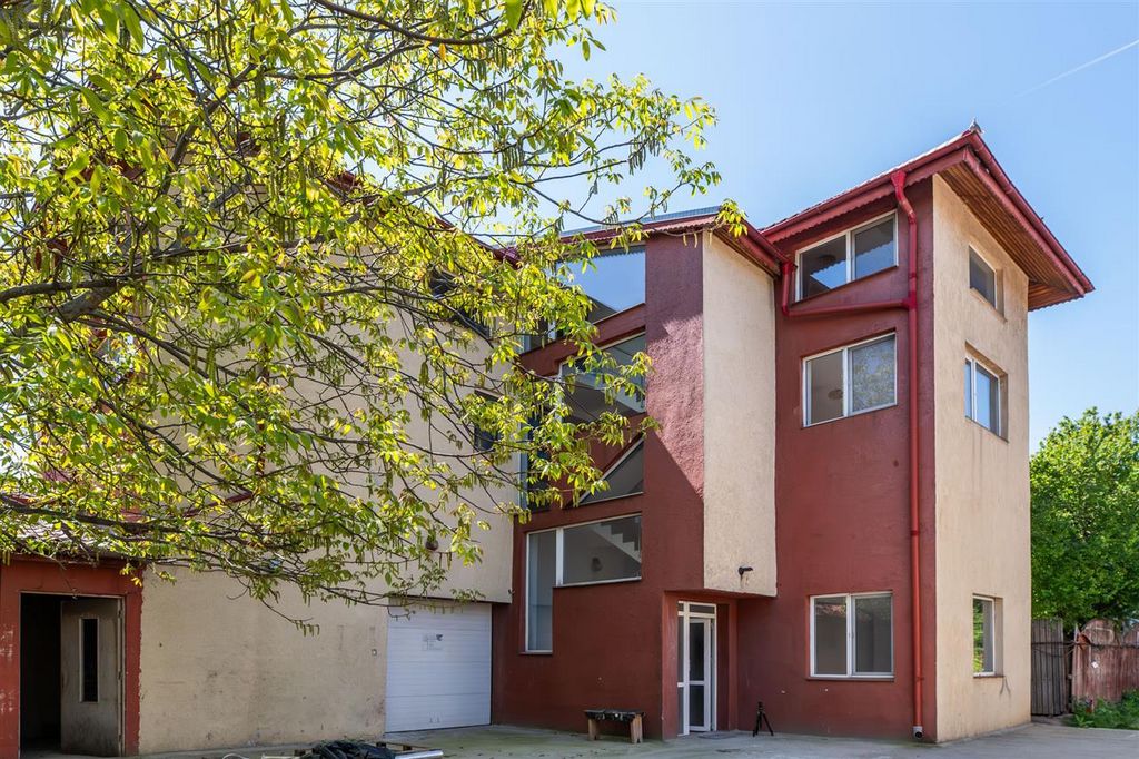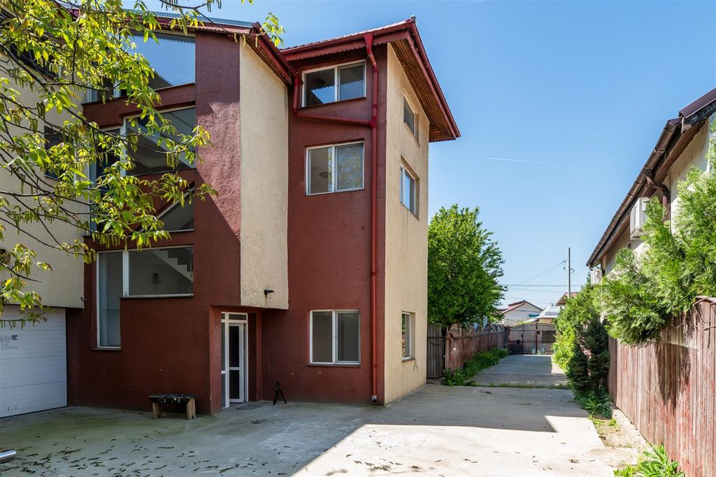 Excellence Through Experience! We are pleased to offer for sale a special property located in Roșu (Chiajna), just 1 minute by car from Sector 6 of Bucharest, with dual access to two paved streets. The property features a production hall with 4-meter height plus a warehouse/auxiliary spaces on the ground floor, and office areas on the upper floors and an open-space attic . The villa is situated next to the Technological High School and Chiajna Police Station, in a high-traffic area with enhanced security. A public transport (STB) station is located right next to the property. There is fast access to the Lacul Morii promenade . Over time, the property has been rented for various economic activities (such as marble processing) and is suitable for industrial use or office space due to its versatile layout (the ground floor and attic are open-space). The building was constructed in 2008 from BCA (aerated concrete) and partially renovated in 2024 . It has a usable area of 297.59 sqm , land area of 935 sqm , and a footprint of 145.6 sqm . Layout: Ground floor: 73 sqm production hall, warehouse, garage, and bathroom First floor: hallway, 5 rooms, and bathroom Attic: 73 sqm open space + 20 sqm room and bathroom The courtyard includes additional annexes that can be used for storage or demolished as needed. The front courtyard is paved with concrete and offers ample parking , while the backyard features a green area perfect for barbecues and relaxation. Utilities and Features: Public water network + private well at 20m Natural gas connection 380V three-phase electricity Sewage system Internet Private gas boiler Flexible viewing schedule , including evenings or weekends (by prior appointment) — we have the property keys. All documents are ready for sale. The property is available for €375,000 , no VAT applicable . We offer free consultancy for obtaining mortgage financing . Partial payment and installment options are accepted. Buy with us and get free furniture transport within Bucharest and Ilfov! Offer listed by Top Estate Team ( www.tet.ro ).