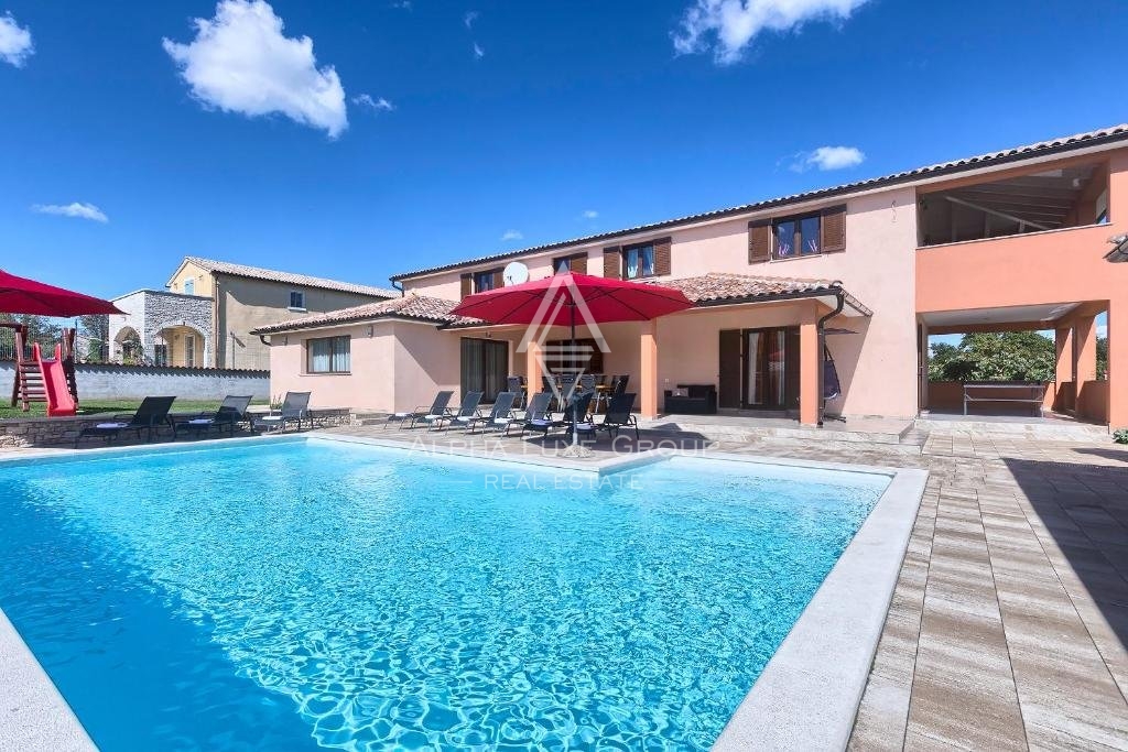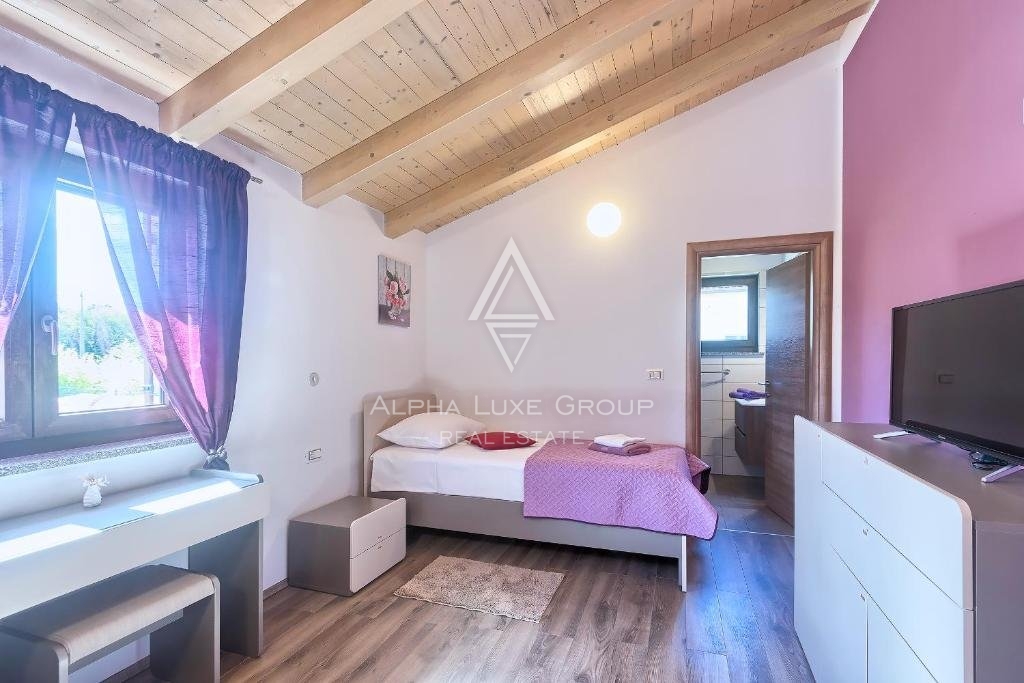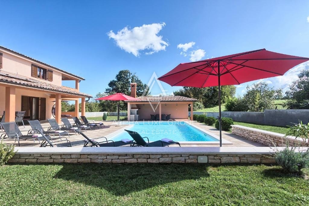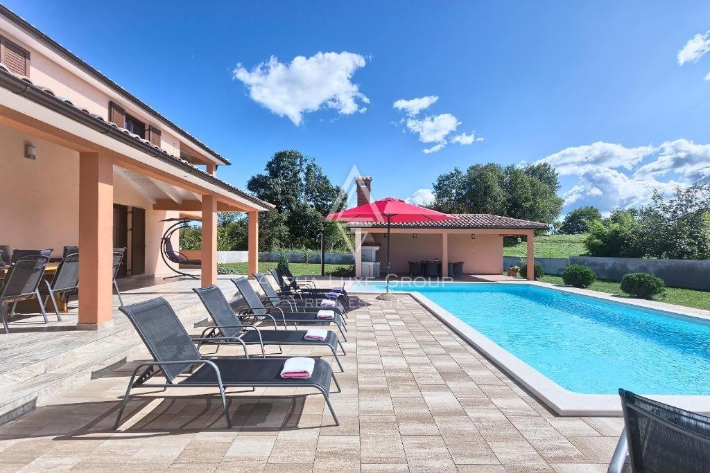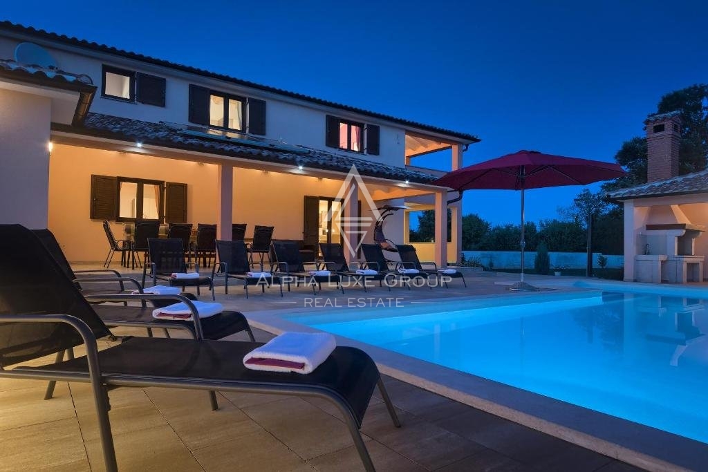 https://alphaluxegroup.com Location: Istarska županija, Barban, Barban.Explore authentic living in Barban, Istria - Expansive villa with private poolIntroducing an expansive villa with a pristine swimming pool, nestled in the serene municipality of Barban, a gem in eastern Istria's crown. Barban, with its acropolis-like charm perched above the Raša river valley, boasts a rich tapestry of historical marvels from the Gothic and Baroque eras, celebrated cultural events like the Ring Race, and an array of festivals that captivate visitors. With a privileged position that touches the Raško Bay, this area spans a lush 100 km², comprising Barban and 31 enchanting villages within its verdure-laden landscape.Available now is a commodious villa within this idyllic setting, offering a fusion of homely comfort and luxury. The residence encompasses a smartly configured layout across two floors, plus a separate studio apartment with its own entrance. The studio on the ground floor features an open kitchen with dining space, a cozy living area, a bedroom, and a bathroom.The primary dwelling space unfolds on both levels. The ground floor invites with a welcoming living room opening onto a sheltered terrace, a fully equipped kitchen with dining area, a bedroom suite with a private bathroom, an additional bathroom with laundry facilities, and a storage room. The first floor hosts three bedrooms, each boasting en-suite bathrooms and access to a spacious covered terrace.Embraced by a sizable, walled garden that guarantees seclusion and tranquility, this property's outdoor space is a Mediterranean haven complete with a 35 m² swimming pool and lounging deck, an alfresco summer kitchen with a traditional open fireplace, and a delightful children's play area.Ideal as a tranquil family haven or as a lucrative tourist rental enterprise, this villa represents a unique investment in one of Istria’s most captivating regions.For more information or to arrange a private tour, please reach out to:Robert Budimir