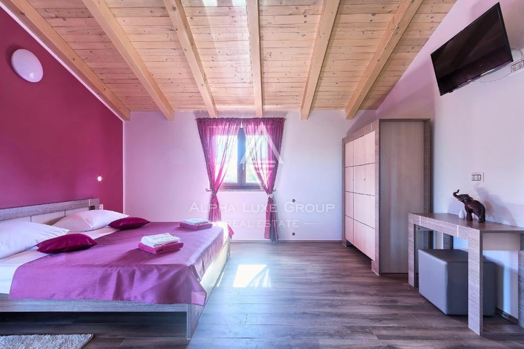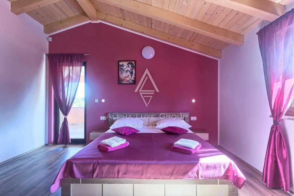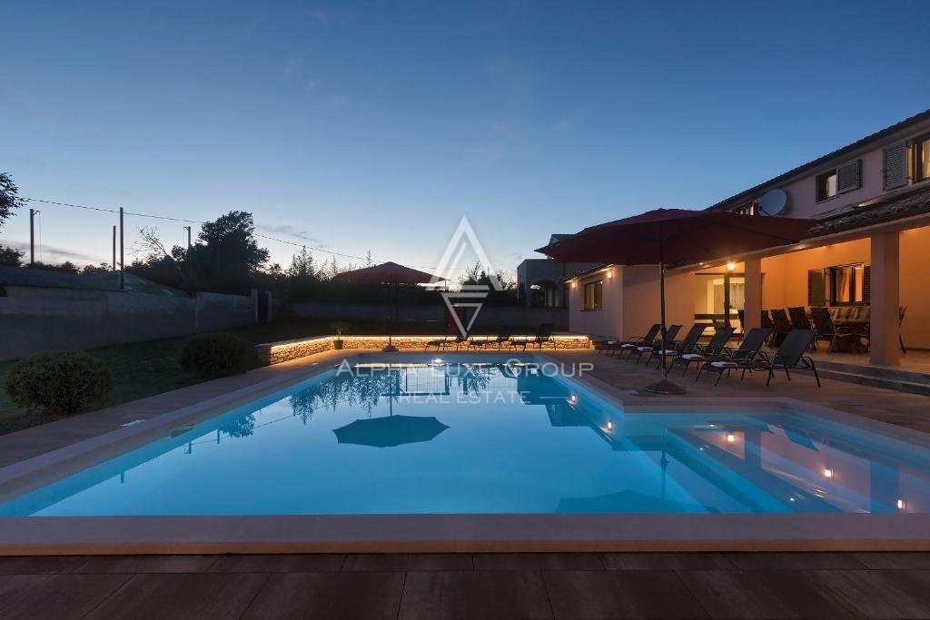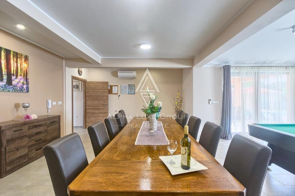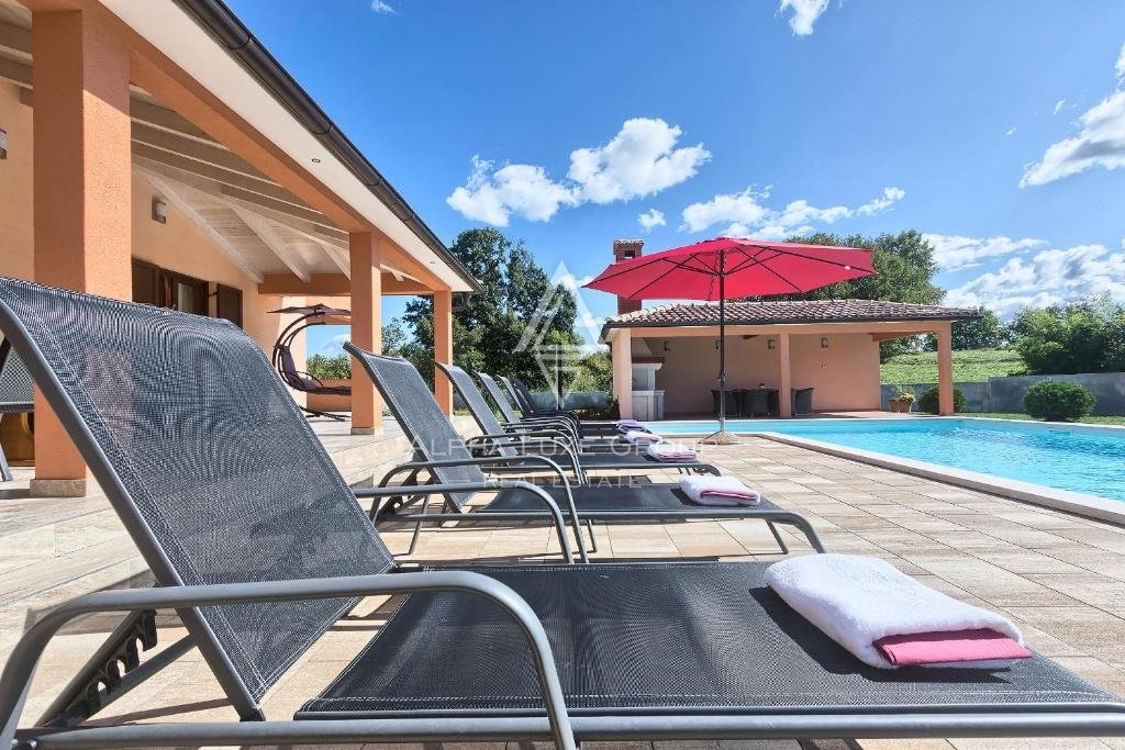 https://alphaluxegroup.com Location: Istarska županija, Barban, Barban.Explore authentic living in Barban, Istria - Expansive villa with private poolIntroducing an expansive villa with a pristine swimming pool, nestled in the serene municipality of Barban, a gem in eastern Istria's crown. Barban, with its acropolis-like charm perched above the Raša river valley, boasts a rich tapestry of historical marvels from the Gothic and Baroque eras, celebrated cultural events like the Ring Race, and an array of festivals that captivate visitors. With a privileged position that touches the Raško Bay, this area spans a lush 100 km², comprising Barban and 31 enchanting villages within its verdure-laden landscape.Available now is a commodious villa within this idyllic setting, offering a fusion of homely comfort and luxury. The residence encompasses a smartly configured layout across two floors, plus a separate studio apartment with its own entrance. The studio on the ground floor features an open kitchen with dining space, a cozy living area, a bedroom, and a bathroom.The primary dwelling space unfolds on both levels. The ground floor invites with a welcoming living room opening onto a sheltered terrace, a fully equipped kitchen with dining area, a bedroom suite with a private bathroom, an additional bathroom with laundry facilities, and a storage room. The first floor hosts three bedrooms, each boasting en-suite bathrooms and access to a spacious covered terrace.Embraced by a sizable, walled garden that guarantees seclusion and tranquility, this property's outdoor space is a Mediterranean haven complete with a 35 m² swimming pool and lounging deck, an alfresco summer kitchen with a traditional open fireplace, and a delightful children's play area.Ideal as a tranquil family haven or as a lucrative tourist rental enterprise, this villa represents a unique investment in one of Istria’s most captivating regions.For more information or to arrange a private tour, please reach out to:Robert Budimir