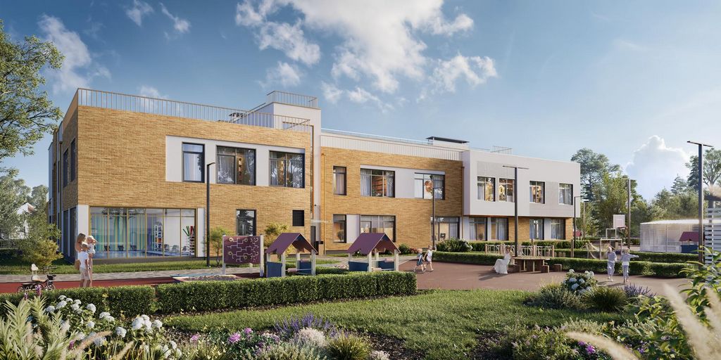 На территории будет школа на 1100 мест с бассейном и детский сад на 110 мест. На первых этажах откроются кафе, магазины и пекарни. Рядом — спортивные секции и медицинские центры.