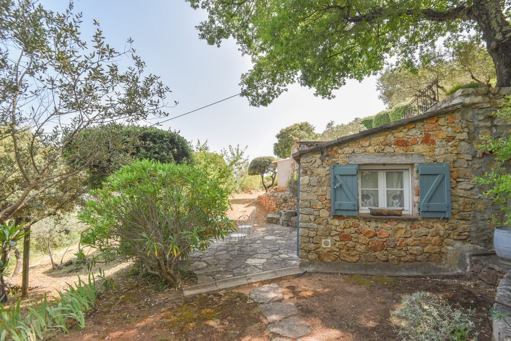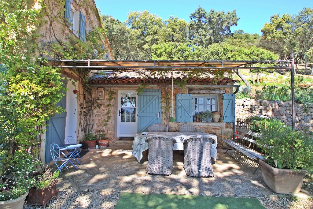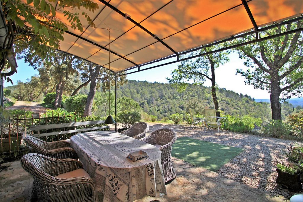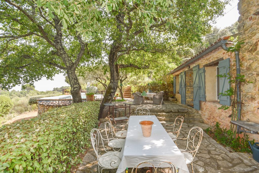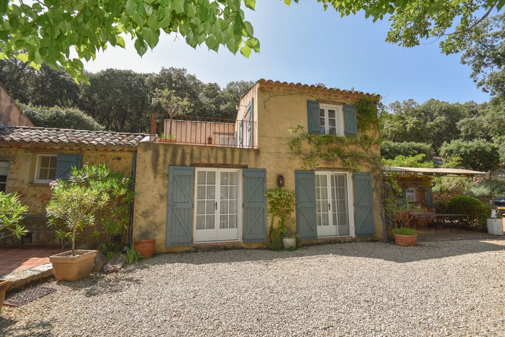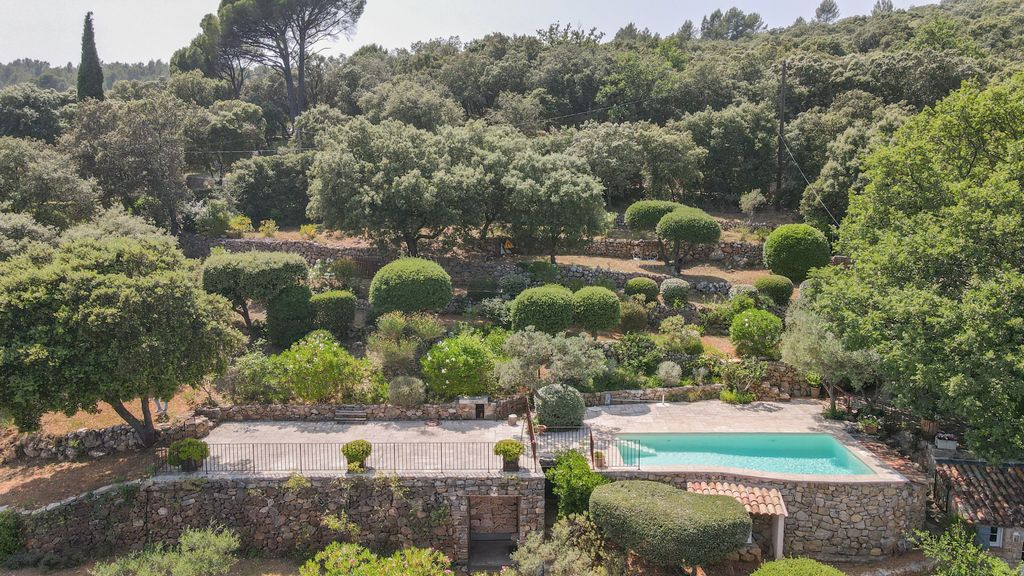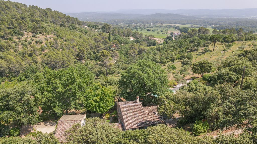 Hidden in the sun-kissed hills of Cotignac, at the edge of a protected natural area, this enchanting estate is the embodiment of the Proveníçal dream. With sweeping, panoramic views over the Massif des Maures and surrounded by over 2.2 hectares of old oaks and more than 200 ancient olive trees, this unique property offers a rare blend of authenticity, privacy, and gentle beauty.At the heart of the estate stands a lovingly restored Bergerie, its gray-green shutters opening to terraces kissed by golden light. Every detail has been carefully preserved to honor its heritage, while discreet modern comforts have been added to ensure effortless living. Inside, the warmth of an open fireplace, the charm of a traditional kitchen, and sun-filled rooms create a deeply inviting ambiance. Upstairs, the spacious master bedroom with fireplace and a luxurious ensuite bath offers a peaceful retreat. Adjacent to the main house is a charming guesthouse, fully self-catering, with its own kitchen, wine cellar, sun terrace, and elegant living spaces, perfect for hosting friends or offering privacy to loved ones. Original features like 18th-century cabinetry blend seamlessly with contemporary comforts, offering guests their own piece of Provencal magic. The grounds invite lingering afternoons beneath the olive trees, games of jeu de boules, and relaxing swims in the heated pool with jetstream. Expansive terraces offer front-row seats to breathtaking sunsets, while a stone cottage, ideal as a fifth bedroom or artist's studio, adds yet another romantic layer to the property. Total living space 207m2 (total space 283m2).Just 8 minutes from the postcard-perfect village of Cotignac, this estate is more than a home, it's a way of life. A place where seasons unfold to the rhythm of cicadas and olive harvests, where beauty lives in every stone, and where each day feels like a page from a love story.